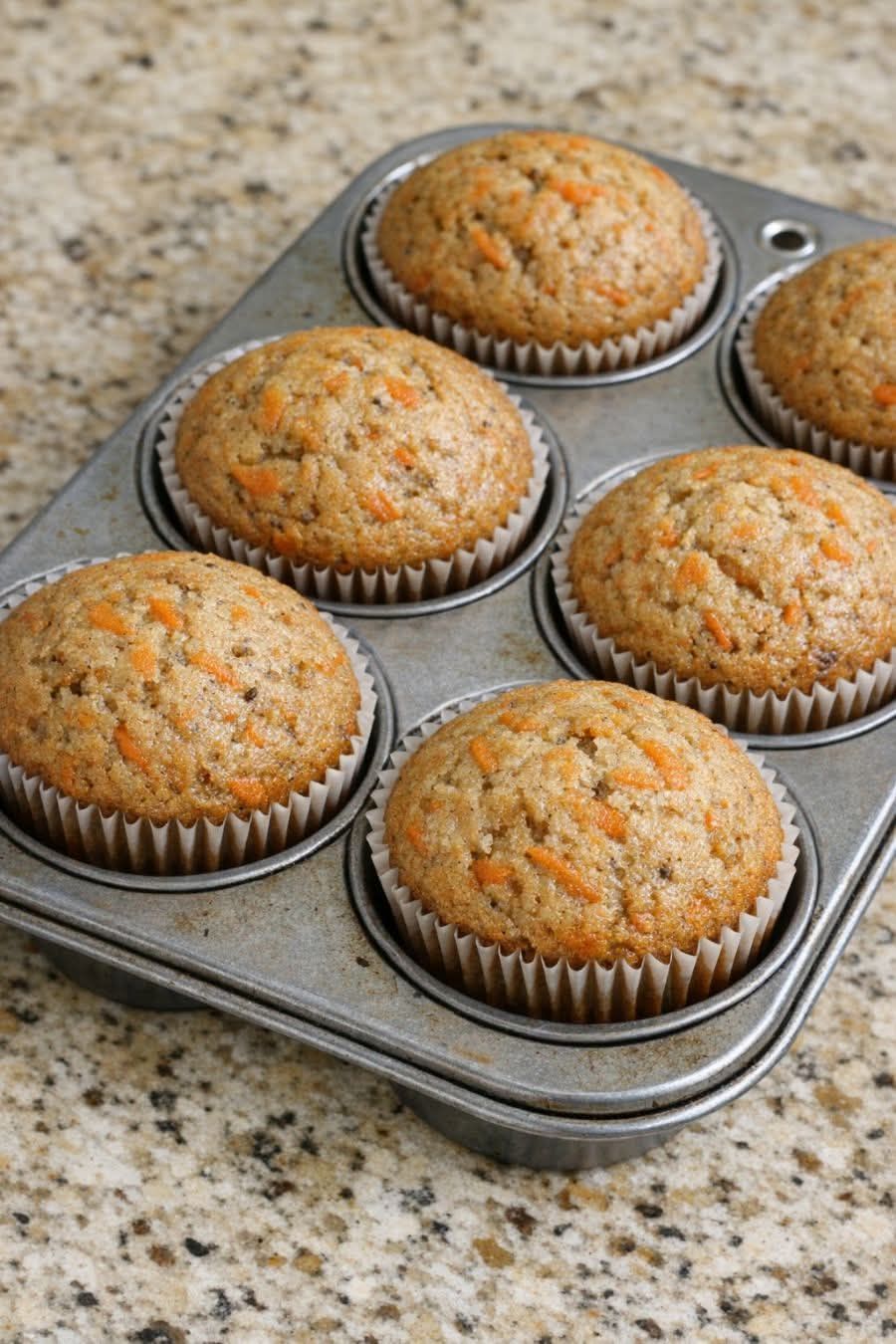 What makes these cupcakes so irresistible is their old-fashioned simplicity. There’s no complicated equipment, no heavy frosting, and no fancy techniques—just a humble batter made from fresh grated carrots, pantry staples, warm spices, and a splash of vanilla. The result is soft, tender cupcakes with lightly domed tops, golden edges, and bright orange flecks of carrot throughout.