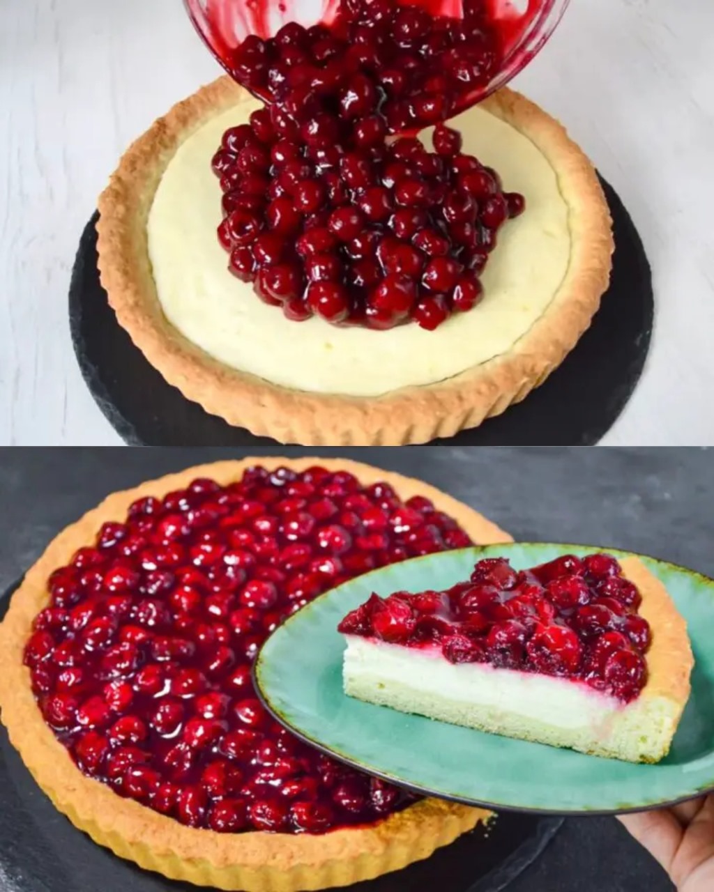 This cherry cheesecake is a delightful dessert combining a buttery crust, a rich and creamy cheesecake filling, and a sweet cherry topping. The combination of tangy cream cheese and tart cherries creates a perfect balance of flavors, making it an irresistible treat for any occasion. Whether you’re celebrating a special event or simply want a delicious dessert, this cheesecake will impress everyone. Plus, it’s easy to prepare with simple ingredients, making it a go-to dessert for home bakers.