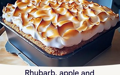 Rhubarb, apple and meringue cake